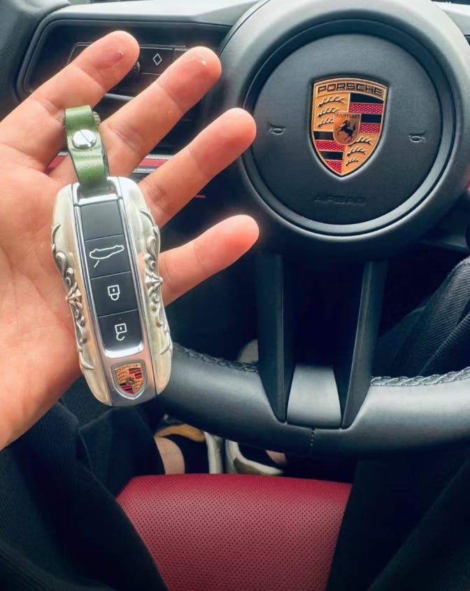 Inspired by Porsche’s focus on precision and driver connection, this sterling silver key case refines the smart key into a tactile object of permanence.