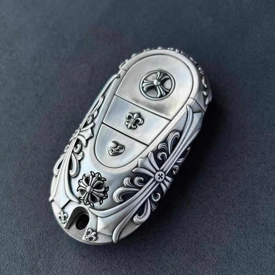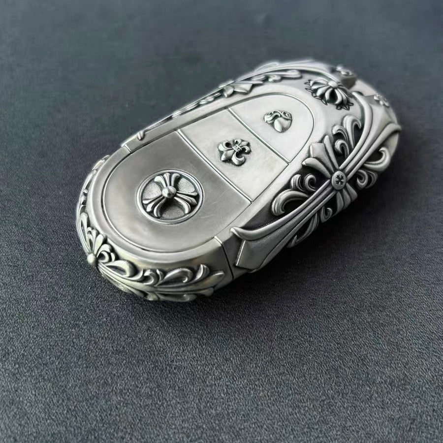 This handcrafted silver key case refines the latest Mercedes-Benz smart key with a more substantial feel in hand, while preserving its clean, modern form. The silver frame adds weight, balance, and durability without interfering with touch controls or daily use.
